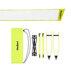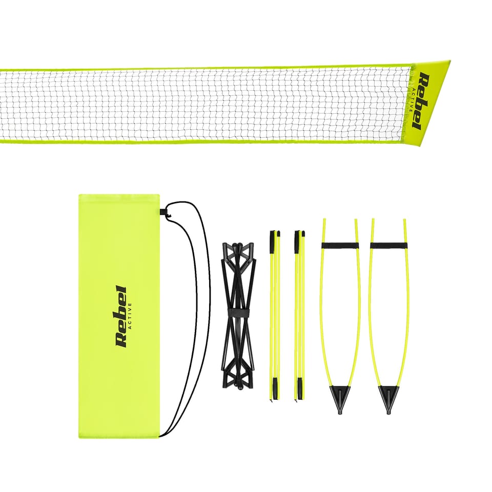 Szybki montaż bez narzędziStabilna konstrukcjaKompaktowy rozmiar po złożeniuMateriał: włókno szklane, metal, PEWymiary po rozłożeniu: 150 x 300 cmSzerokość siatki: 30 cmWaga: 1 kgW zestawie: pokrowiec
