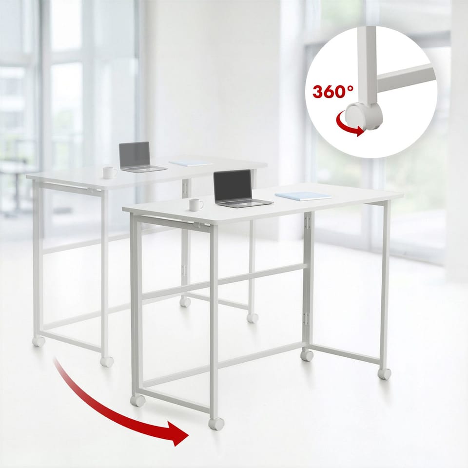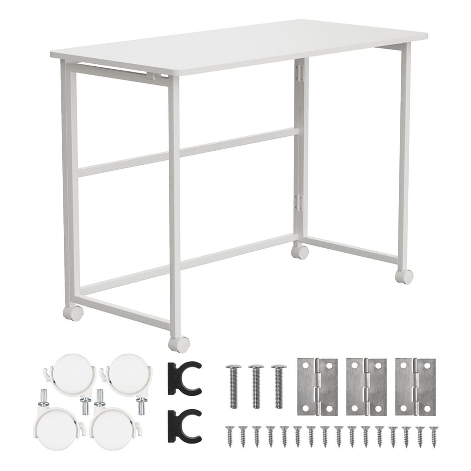 Składane biurko stolik Maclean, białe, mobilne, 100x50cm, max. 100kg, MC-1250 W