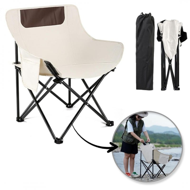 Składane krzesło turystyczneTo idealny towarzysz wszystkich zajęć rekreacyjnych na wolnym powietrzu: kemping, wędkarstwo, wakacje na plaży czy w ogrodzie - wystarczy usiąść i cieszyć się spokojem.Krzesło jest łatwe do składania. Wystarczy jeden ruch i możesz cieszyć się wygodnym siedziskiem.Krzesło posiada boczną kieszonkę na wodę lub telefon.Fotel posiada pokrowiec z rączką, dzięki którem zabierzesz go ze sobą w nie jedną wyprawę. Wymiary:- Wysokość całkowita: 65 cm- Wysokość siedziska: 45cm- Szerokość: 60 cm- Głębokość: 41 cm Maksymalny udźwig krzesła do 130 kg. Przybliżone wymiary krzesła w pokrowcu: 80cm x 26cm x 20cmWaga krzesła z pokrowcem: 1,7kg