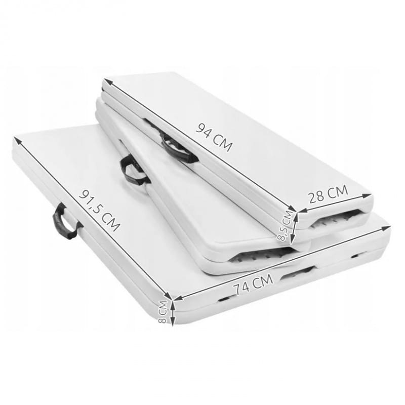 Zestaw cateringowy składany w walizkęSkładany zestaw: stół + 2 ławki kateringowe.Praktyczny i uniwersalny stół idealny na kemping lub imprezy plenerowe.Bardzo praktyczny i lekki. Stolik po złożeniu tworzy praktyczną walizkę, dzięki czemu zajmuje małą przestrzeń i jest łatwy do przeniesienia.Specyfikacja:- Wymiary blatu: 70 x 180 cm, wysokość 74 cm- Stabilna konstrukcja- 100% wodoodporny- Trwały- Konstrukcja wykonana ze stali malowanej proszkowo.- Blat wykonany z mocnego tworzywa sztucznego HDPE 3,5 cm- Składany, wygodne rączki do transportu- Lekki, zajmuje mało miejsca po spakowaniuMaksymalne równomierne obciążenie: około 100 kgWaga: kg netto / kg bruttoWymiary opakowania: