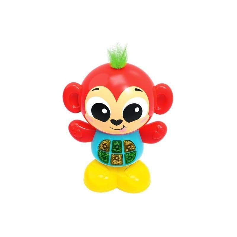 Skoczek Małpka Gotowi na małpie „podskoki"? Ten uroczy zwierzak posiada sprężyste nóżki, dzięki czemu można go przycisnąć, słuchając przy tym zabawnych odgłosów sprężynowych skoków! Zabawka mówi po polsku i zna aż 25 różnych dźwięków oraz melodii, w tym także edukacyjną piosenkę. Za uruchamianie poszczególnych funkcji odpowiadają świecące przyciski na brzuszku małpki. Zielona czuprynka wyposażona została w sensor dotyku, dzięki czemu, po dotknięciu jej, usłyszymy zabawne odgłosy. Cechy produktu: - 25 dźwięków i melodii; - świecące przyciski; - edukacyjna piosenka; - wesołe melodie; - włochata czuprynka - sensor dotyku; - ruch sprężynowy; - regulacja głośności; Baterie: 3 x LR14 (zawarte w zestawie) Wiek: 2+