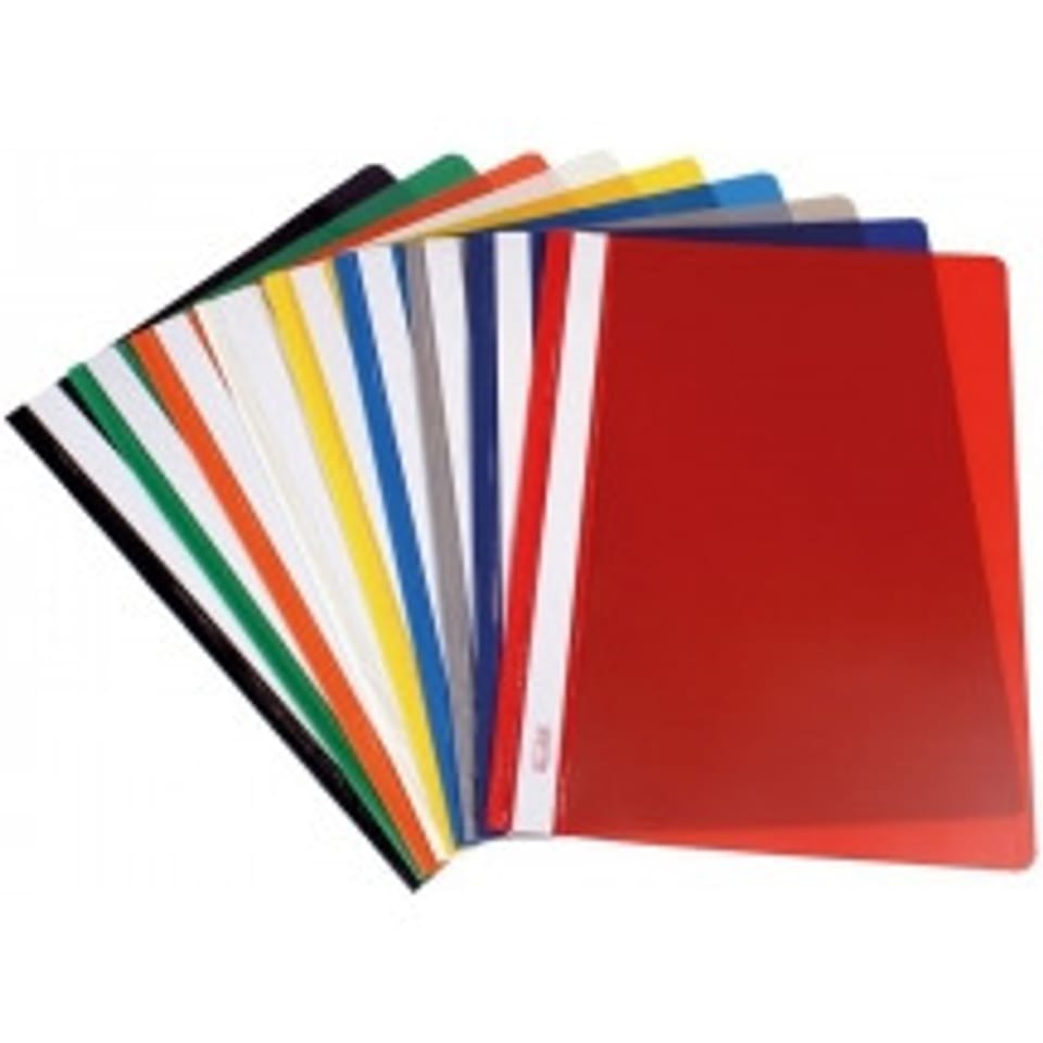 * jednostka sprzedaży: 1 szt. * folia PVC, przód twardy przezroczysty, tył twardy kolorowy * w środku blaszka i wąs o długości 16,5 cm, umożliwiający wpięcie dokumentów do 2 cm * wymienny, papierowy pasek do opisu * dwa wycięcia ułatwiające wysuwanie paska * format A5 * mix kolorów