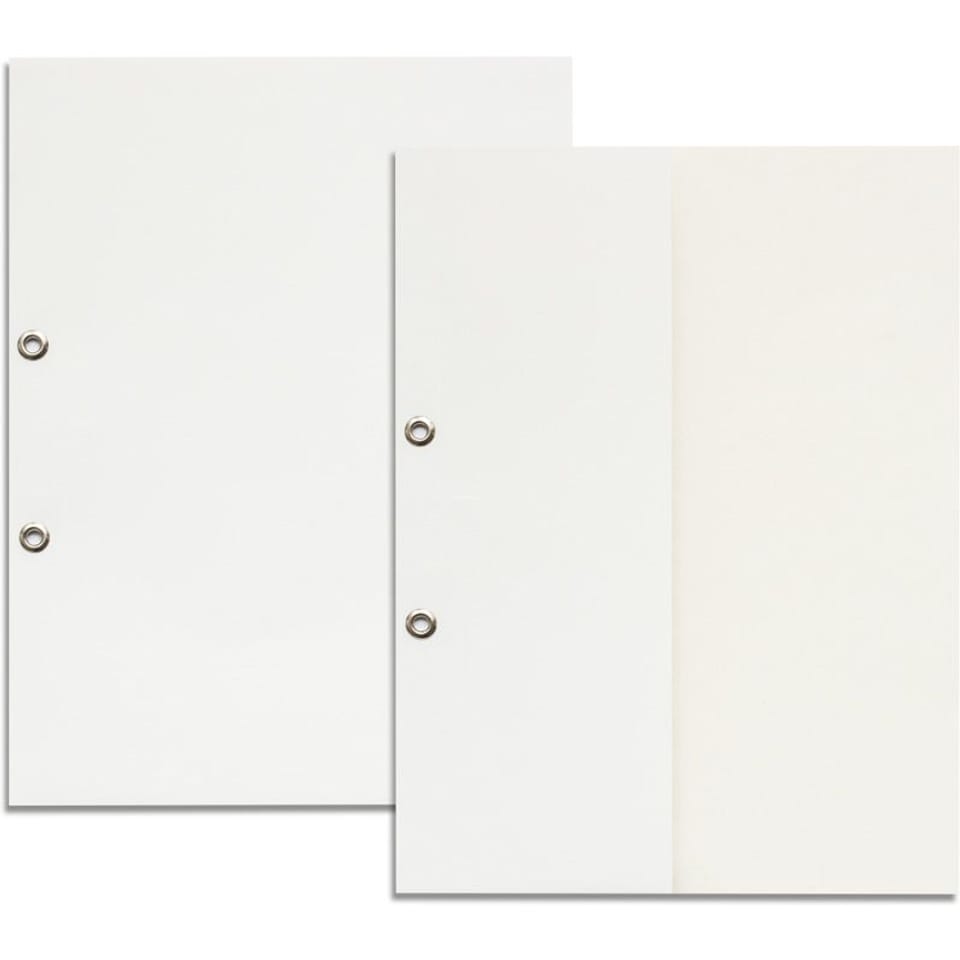 * jednostka sprzedaży: 1 szt. * wykonany z luksusowej tektury biało ? białej o klasie GC2 * gramatura: 250 g/m2 * podwójnie powlekana * wysoka gładkość * świetne właściwości drukowe po obu stronach * wewnątrz metalowy wąs * wyposażony w metalowe oczka umożliwiające wpięcie do segregatora * okładka wierzchnia wykonana z połowy formatu * format A4