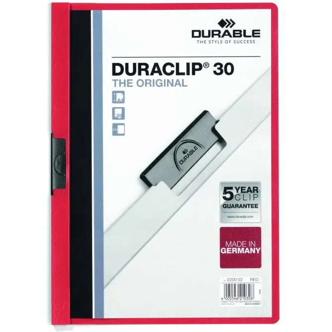 Skoroszyt zaciskowy A4 30 kartek czerwony DURACLIP Original DURABLE