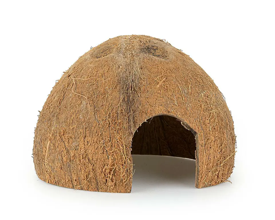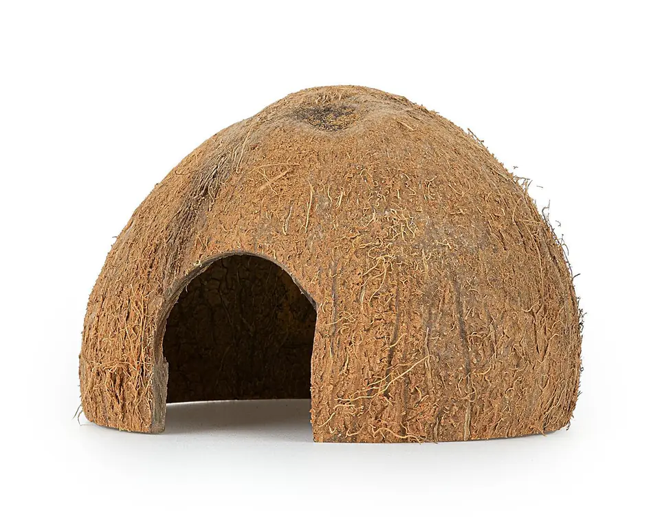 Połówka skorupy kokosa nieszczotkowana dla gadów, płazów, ryb i małych gryzoni Skorupa kokosa idealnie sprawdzi się jako schronienie dla wielu gatunków zwierząt wodnych, gadów, płazów czy gryzoni. Perfekcyjnie wtapia się w otoczenie i jest nieodzownym elementem w hodowli pyszczaków, pielęgnic, bocji sumów i zbrojników. Jej naturalny wygląd nada niepowtarzalnego klimatu każdemu zbiornikowi hodowlanemu. Kokos elegancko prezentuje się w terrariach, gdzie może posłużyć jako kryjówka dla mniejszych zwierząt oraz jako ozdoba, można go też wykorzystać jako domek dla chomików, myszek i innych małych gryzoni. To ulubione miejsce składania ikry przez zbrojniki. Średnica: ok. 11 cm Ilość: 6 szt. stara nazwa: KOKOS skorupa 1/2 nieszczotk. 6 szt