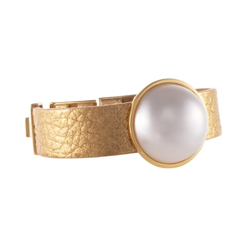 Elegancka bransoletka wykonana z miękkiej, naturalnej skóry w połączeniu z elementami w kolorze złota. Centralnym punktem ozdoby jest subtelna perła, która dodaje całości klasy i ponadczasowego uroku. Bransoletka doskonale sprawdzi się zarówno w codziennych stylizacjach, jak i podczas wyjątkowych okazji.