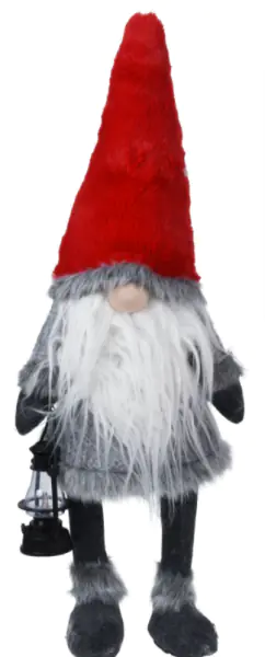 Skrzat 51 cm krasnal świąteczny LED czerwona czapka Figurka świąteczna krasnal ze świecącym noskiem LED i latarnią LED stwarza niepowtarzalny klimat, jednocześnie czyniąc dom przytulnym i ciepłym. Skrzat jest idealną dekoracją, która podkreśli wyjątkowy czas, jakim są Święta Bożego Narodzenia. Uroczy skrzat z pewnością sprawi radość naszym bliskim. Świetnie będzie się prezentował przy choince, kominku, na komodzie czy na parapecie. Dane techniczne: Wymiary: 26 x 18 x 51 cm Waga: 900 g Kolor: czerwony i szary Figurka: skrzat z nosem LED i latarnią Ilość lampek: 1 ciepła biała(nos), 1 żółta migająca (latarnia) Baterie: 1 x CR2032, 3 x AG13 - baterie w zestawie Materiał: tkanina, pianka