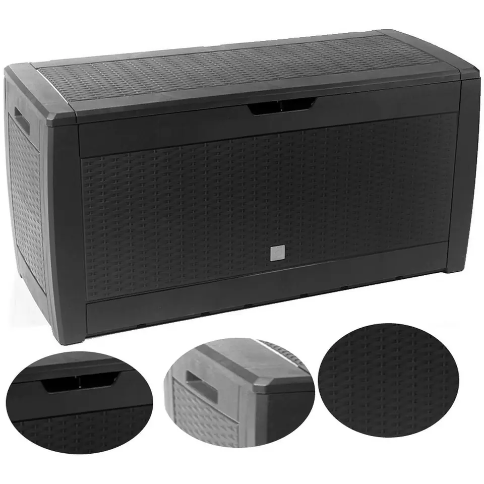 Parametry:- Wymiary zew. skrzyni: 119 x 48 x 60 cm (szer. x gł. x wys.)Wymiary wew. skrzyni: 114,5 x 45 x 55 cm (szer. x gł. x wys.)Pojemność: 310 lMaksymalne obciążenie: 20 kgMateriał: tworzywo sztuczneWaga netto: 6,6 kgWaga brutto: 7,4 kgKolor: antracytOpakowanie (folia): 59 x 9 x 118 cmMarka: Prosperplast