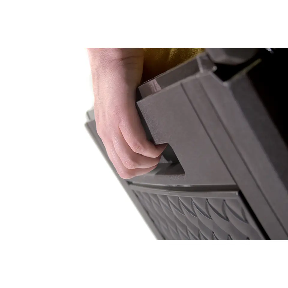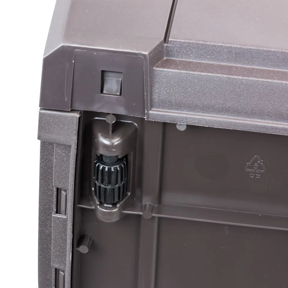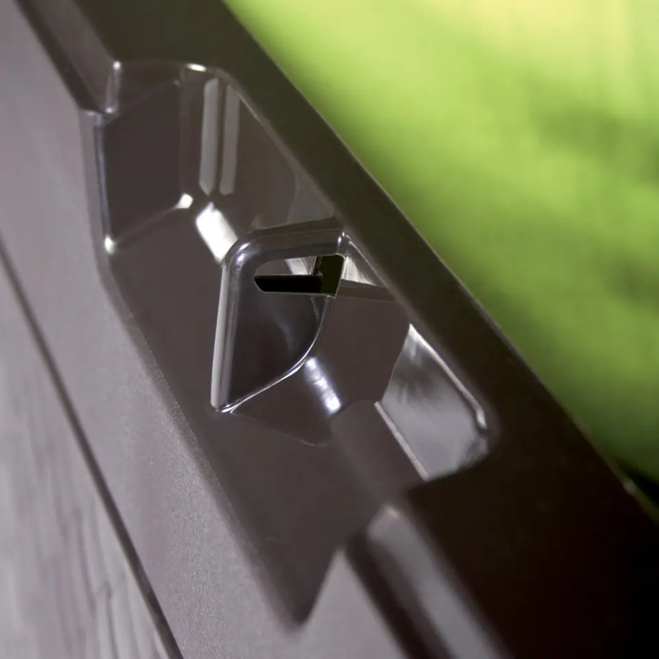 Prosty, a zarazem solidny mechanizm otwierania umożliwi wygodne i szybkie korzystanie ze skrzyni, a dodatkowy uchwyt na kłódkę umożliwi bezpieczne zamknięcie zawartości.
