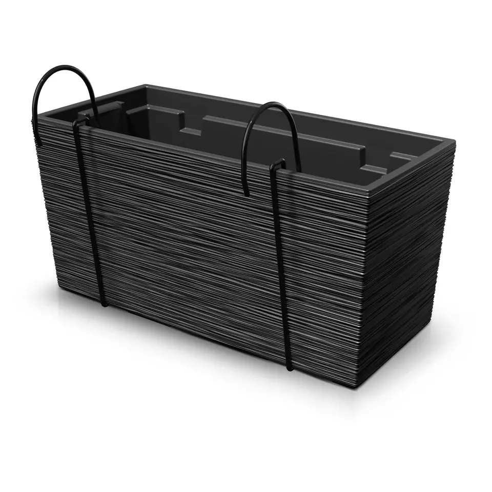 Cechy- Funkcjonalna i estetyczna skrzynka balkonowa wykonana z tworzywa sztucznego- Przykuwa uwagę powierzchnią o prążkowanej strukturze- Będzie mocnym akcentem przy aranżacji przestrzeni balkonu- Wyposażona w wyjmowany wkład- Wyposażona w haki umożliwiające powieszenie jej na poręczy- Wysoka jakość wykonania- Odporna na promieniowanie UV- Produkt renomowanej polskiej firmy Prosperplast- Długość: 39,5 cm- Szerokość: 18,5 cm- Wysokość: 19,5 cm- Objętość wkładu / skrzynki: 8 / 12 l- Kolor: antracytowy