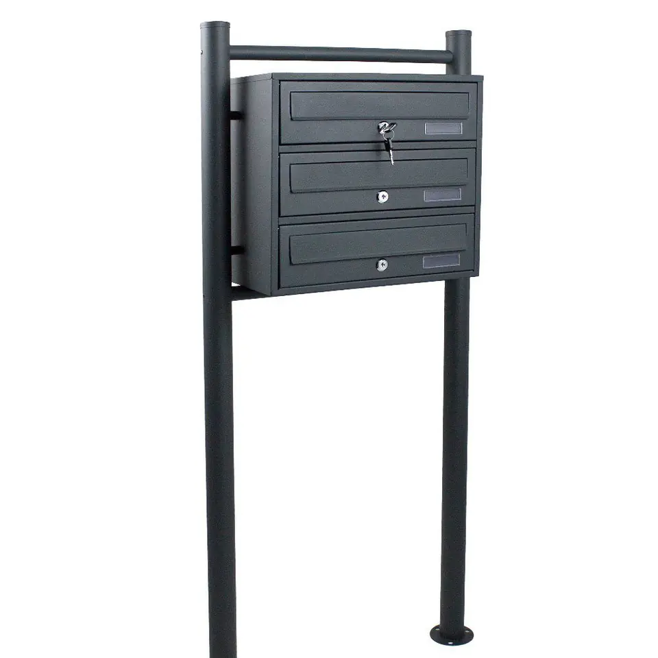 Elegancka i trwała skrzynka lokatorska na 3 lokatorów, wykonana ze szczotkowanej stali nierdzewnej, idealnie sprawdzi się w przestrzeniach zewnętrznych – na osiedlach, przy wejściach do budynków czy biur.