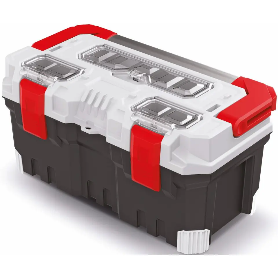 Skrzynka posiada duży i ergonomiczny uchwyt, wykonany z aluminium, która utrzyma podstawowe narzędzia i drobne elementy aż do 15 kg.