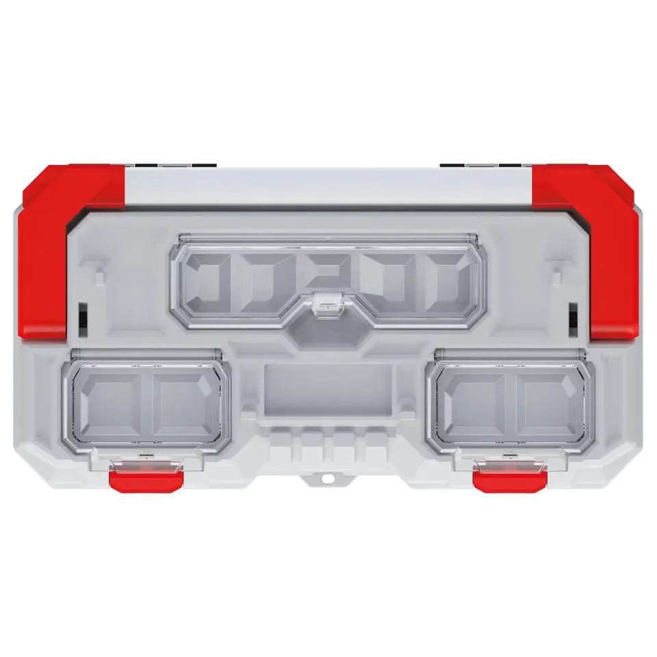 - Wymiary zew. skrzynki ok..: 55,4 x 28,6 x 27,6 cm (szer. x gł. x wys.)Wymiary zew. nosidła (pomiar bez rączki) ok.: 52,5 x 24,7 x 5,5 cm (szer. x gł. x wys.)Wymiary organizerów ok.: 14 x 7,5 x 3,5 cm /x2 i 26,5 x 4,5 - 7 x 3,5 cm/ 1 x (szer. x gł. x wys.)Wymiar uchwytu: 50 x 2,7 x 3,4 cm (dł. x szer. x wys.)Materiał: PP tworzywo sztuczne bardzo dobrej jakości, uchwyt aluminium, zapięcia ABSWyposażenie: wyjmowane nosidło narzędziowe, 3 organizery z przeźroczystymi pokrywkami w pokrywiePokrywa zapinana na zatrzask z tworzywa sztucznego ABSOtwór na kłódkę: takWaga netto: 2,75 kgKolor: czarny, czerwony, szaryUdźwig: 20 kgMarka: Kistenberg