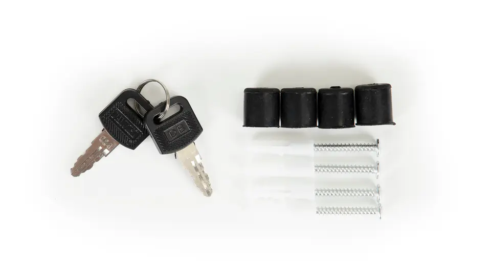 Razem ze skrzynką otrzymasz zestaw montażowy - 4 kołki i dystanse, dzięki temu możesz przystąpić do założenia skrzynki zaraz po rozpakowaniu. W zestawie znajdują się dwa klucze do otwierania skrzynki.