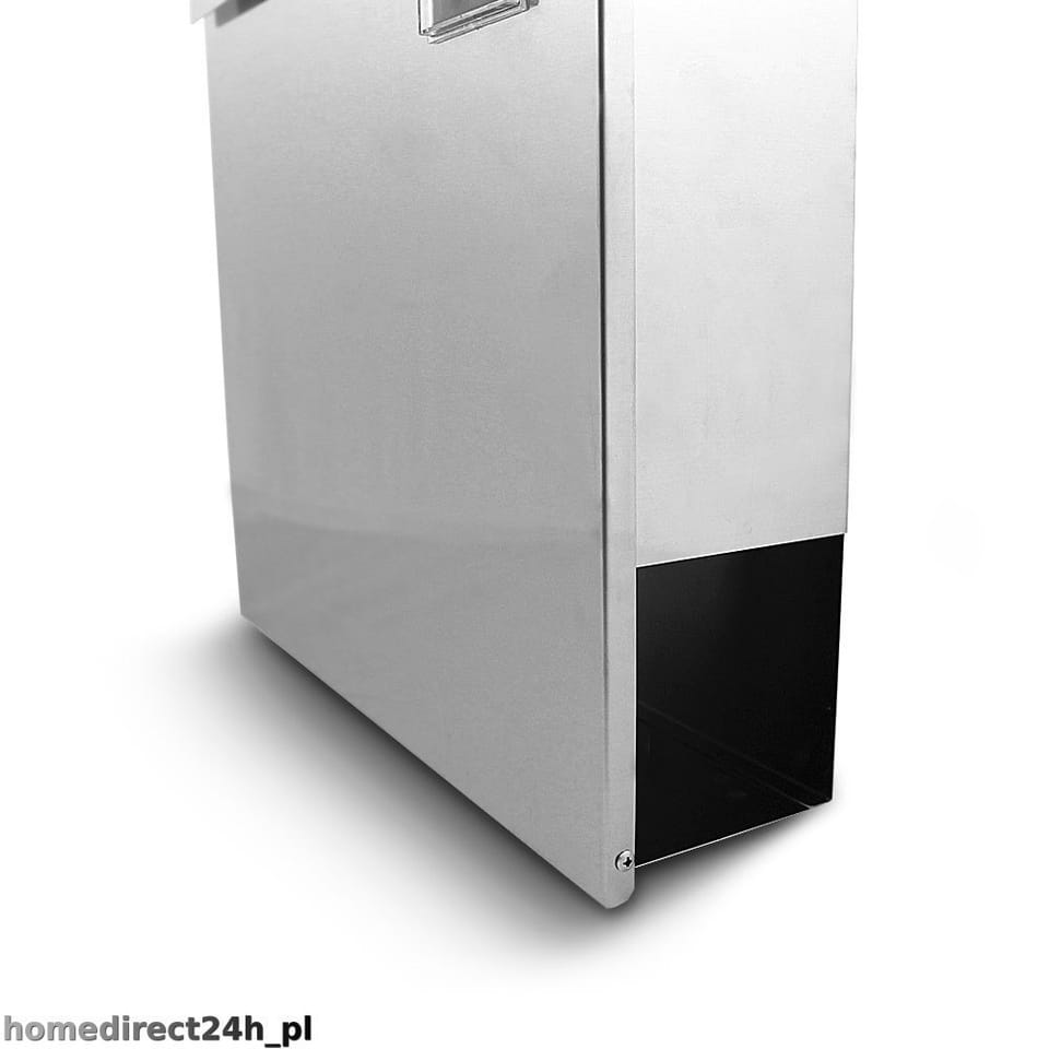 SKRZYNKA POCZTOWA NA LISTY SREBRNAOPIS:Duża skrzynka dla domu lub firmy. Skrzynka pocztowa z lakierowanej stali z gazetnikiem w nowoczesnym, ponadczasowym i eleganckim designie. Skrzynka pocztowa jest zamykana, pojemność skrzynki jest wystarczająca dla zastosowania w domu i firmie. Posiada odpowiednio duży rozmiar otworu wrzutni. W komplecie dostarczana jest skrzynka i materiały montażowe oraz dwa klucze. SKŁAD ZESTAWU:W komplecie dostarczana jest skrzynka i materiały montażowe oraz dwa klucze.DANE TECHNICZNE:Wymiary skrzynki: 370mm x 370mm x 100mm (Szer / Wys / Gł)Wymiary gazetnika: 370mm x 90mm x 90mm (Szer / Wys / Gł)Wymiar wrzutu: 300mm x 30mmKolor: MetalicznyMateriał: Stal lakierowanaWaga: 2,65 kgWymiary paczki:36,5x12,5x40cmWaga z opakowaniem: 3,2kg