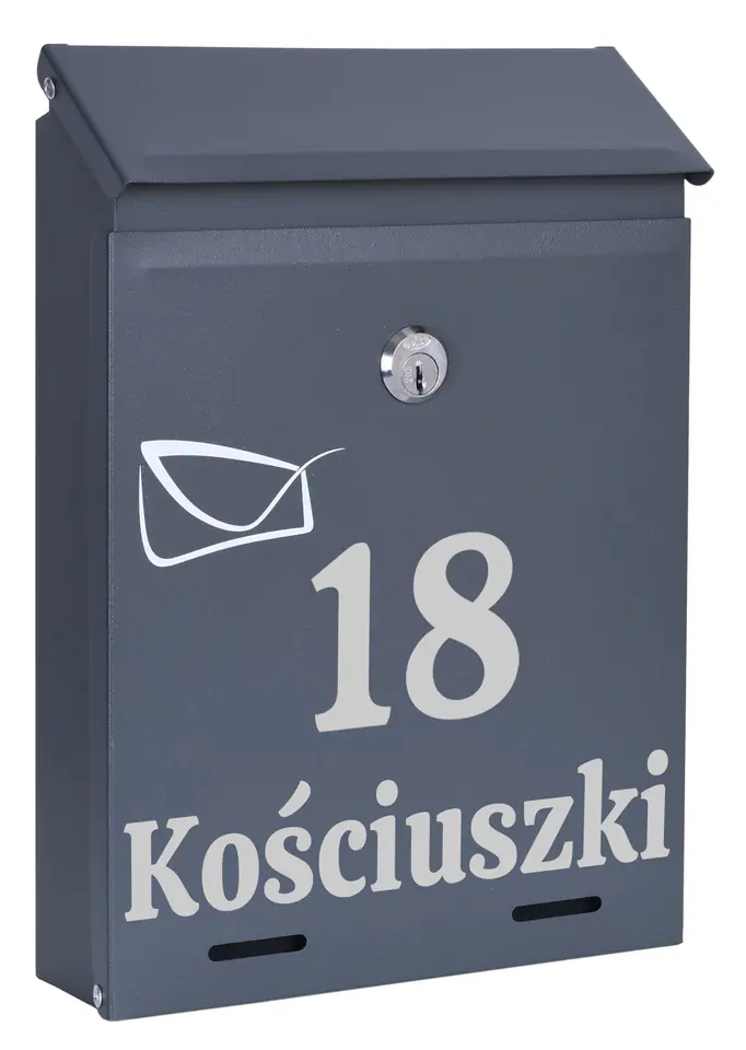 Skrzynka pocztowa na listy Odvin antracyt z napisamiPrzeznaczenie: odbiór korespondencji | Kolory: antracyt⭐Odporna na warunki atmosferyczne⭐Zamykana na zamek⭐Zakup od producenta Nowoczesna i funkcjonalna skrzynka pocztowa Odvin antracyt, zaprojektowana z myślą o trwałości i elegancji. Kompaktowe wymiary 26 x 18,5 x 5,5 cm oraz otwór na listy 18 x 2 cm idealnie sprawdzają się w mniejszych przestrzeniach. Wykonana z odpornej na warunki atmosferyczne stali galwanizowanej malowanej proszkowo, nadaje się do montażu na zewnątrz i wewnątrz. Bezpieczna dzięki zamkowi na klucz – zestaw zawiera 2 kluczyki i elementy montażowe. Solidność i styl w jednym! Produkt spersonalizowanyMożliwość wykonania dowolnego napisu: nr domu, nazwa firmy, nazwisko, ulica itp. Napis wykonany jest metodą ploterową folią Oracal, odporną na warunki atmosferyczne. Folia jest w kolorze srebrnym Cechy produktuStal galwanizowana malowana proszkowoOdporność na warunki atmosferyczneMontaż wewnątrz i na zewnątrzZamykana na kluczW komplecie 2 kluczyki i zestaw montażowy Wymiary produktuWymiary 26 x 18,5 x 5,5 cmWymiar otworu na listy: 18 x 2 cmRozstaw otworów montażowych 10 x 12 cm Po zakupie podaj nam wytyczne do personalizacji Twojej skrzynkiPo dokonanym zakupie w wiadomości do sprzedającego proszę podaj: wybrany wzór czcionki, napis do wykonania. (przykład: wzór2, Kościuszki 18). Napis zostanie wykonany dokładnie wg wytycznych z wiadomości do sprzedającego. Napisy mogą mieć same wielkie litery np. "KOŚCIUSZKI" lub małe litery np. "cicha". Wyjątkiem jest wzór4 którego czcionka ma tylko wielkie litery. Jeśli napis ma być wykonany ze skrótem ulicy "ul." to również prosimy podaj taką informację. Polskie znaki są dozwolone (np: ę,ą,ć,ś itp.).Dostępne wzory:wzór1wzór2wzór3wzór4wzór5 Informacje dodatkowePrzedstawione kolory należy traktować poglądowo - mogą odbiegać od rzeczywistych ze względu na różne ustawienia monitorów oraz proces obróbki zdjęć. Rzeczywiste wymiary mogą się różnić od podanych wyżej. Tolerancja błędów może wynosić +/- 5%. Marka:GockowiakKod EAN produktu:5902340329405Kolor:antracytWysokość: 26 cmSzerokość:18,5 cmGłębokość:5,5 cmMateriał:stal galwanizowanaProsimy o przemyślany zakup. Nie ma możliwości zwrotu produktów spersonalizowanych.