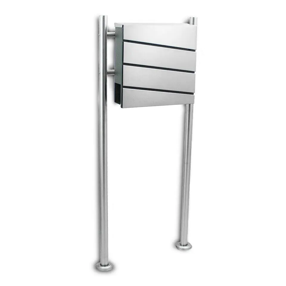 Pojedyncza i nowoczesna skrzynka na listy na stojaku jest odporna na opady atmosferyczne. Skrzynka pocztowa jest wykonana ze stali nierdzewnej, a grubość ścianek to około 0,8mm. Skrzynka posiada otwory z tyłu, które pozwolą na łatwy montaż do słupków. Designerski wygląd zagwarantuje dbałość oraz styl na Twojej posesji.