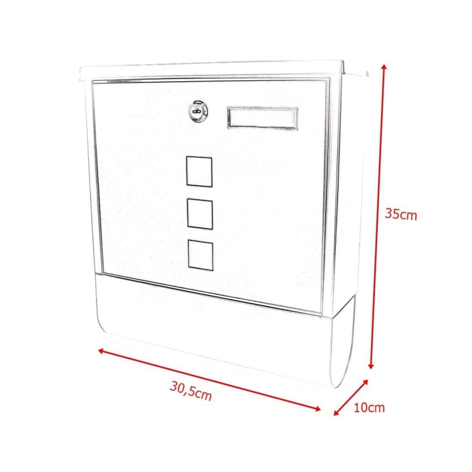 - Wysokiej jakości Stal nierdzewna - Okienko do wstawienia nazwiska - Dolny pojemnik przeznaczony do codziennych gazet - W komplecie dwa kluczyki oraz elementy do montażu - Modern design