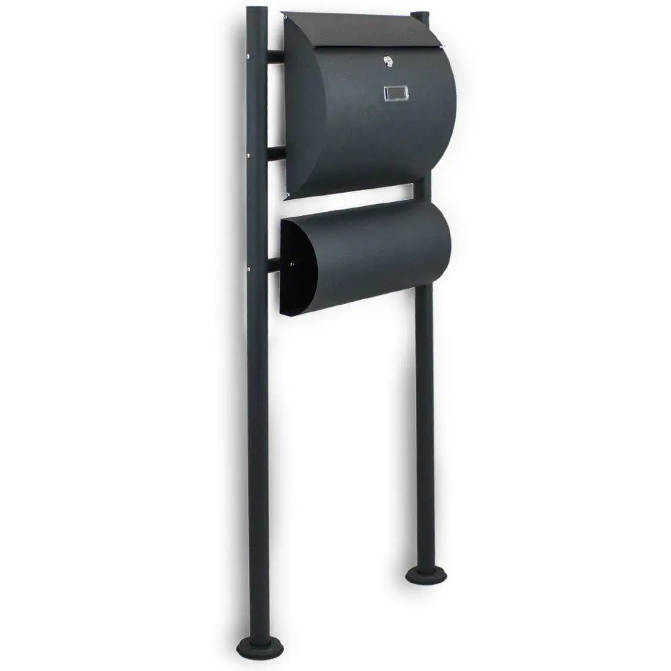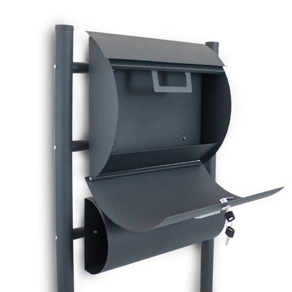 Wymiary (Dł / Szer / Gł): 50 x 120 x 15 cm,Wymiary skrzynki pocztowej (Dł / Szer / Gł): 37,5 x 33 x 11 cm,Wymiary gazetnika (Dł / Szer / Gł): 37,5 x 17,5 x 9 cm,Wysokość: 1,20 m,Średnica podstawy: 4 cm,Materiał: metal, lakierowana proszkowo,Waga: 7 kg,Kolor: ciemnoszara