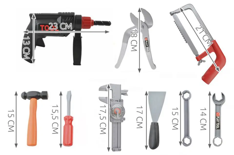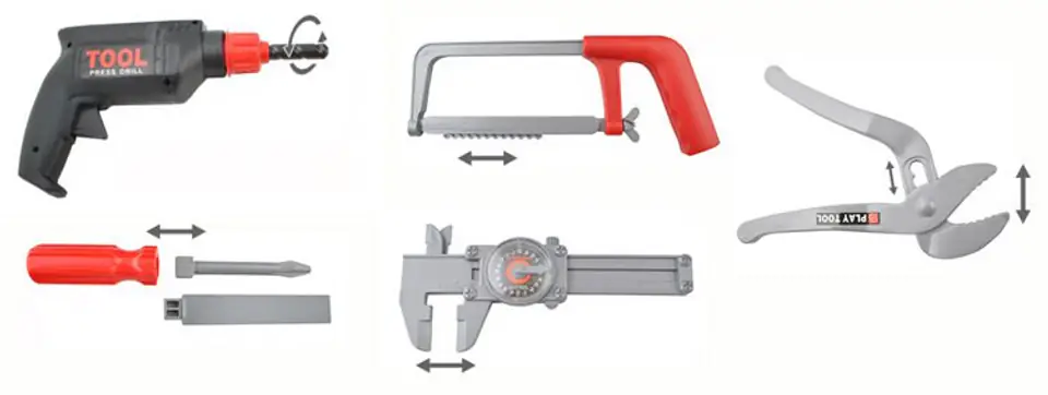 Fantastyczny zestaw narzędzi w walizce dla każdego małego majsterkowicza. Zestaw rozwija zdolności manualne, wyobraźnię, ćwiczy odpowiedzialności i sumienności. To doskonała zabawa. Narzędzia są funkcjonalne - wiertarka posiada obrotowe wiertło (nie wymaga baterii), klucz jest regulowany, piła ręczna jest ruchoma a śrubokrętami można przykręcać śruby z zestawu.