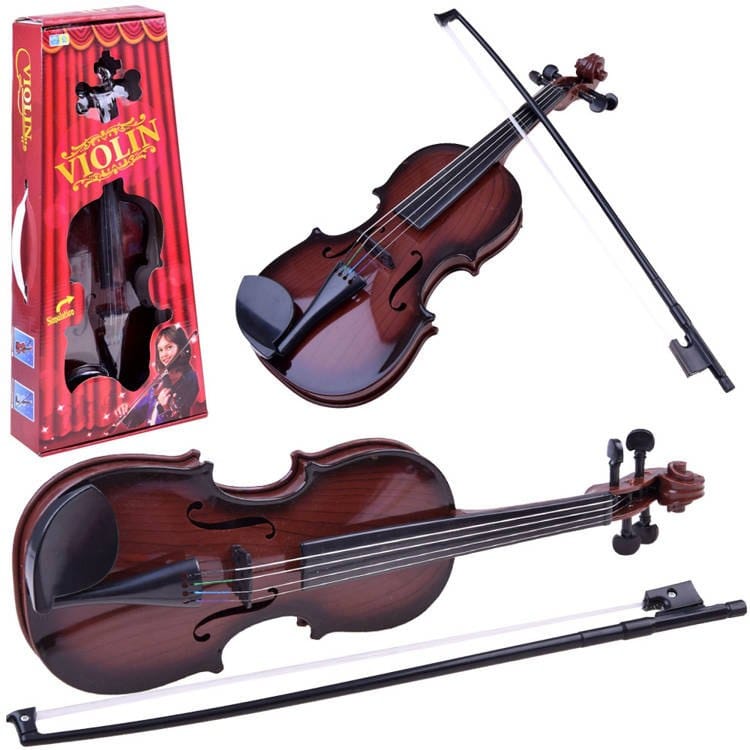 Skrzypce są plastikowe w drewno podobnym kolorze, posiadają 4 metalowe struny a smyczek wykonany jest z żyłek. Świetnie posłuży jako rekwizyt do przebrania.