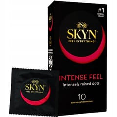 - SKYN Intense Feel to wyjątkowe prezerwatywy posiadające fale intensywnych wypustek w najbardziej wrażliwych miejscach dla zapewnienia maksymalnej stymulacji i przyjemności. Intense Feel wykonane z materiału Skynfeel, który jest tak delikatny i wygodny, że zapewnia prawdziwie naturalne dopasowanie oraz odczucia.