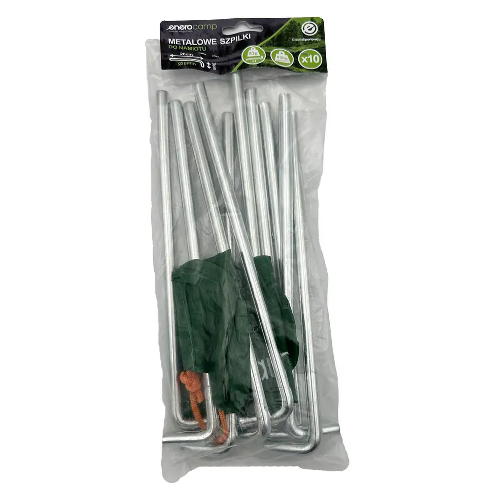 - Wymiary ok.: 3 x 0,8 x 20 cm (dł. główki x śr. x wys.)Materiał: metalWaga netto ok.: 0,830 kgWaga brutto ok.: 0,845 kgKolor: srebrny, zielony woreczekIlość sztuk zestawie: 10Marka: Enero CampOpakowanie (woreczek): 11 x 1,5 x 26 cm (szer. x gr. x wys.)