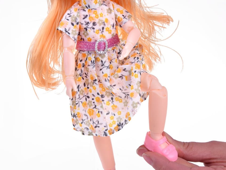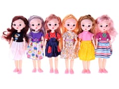 Urocza laleczka, która z pewnością przypadnie do gustu każdej małej dziewczynce. Lala będzie świetną towarzyszką zabaw a także powierniczką sekretów- na pewno nikomu ich nie zdradzi. Można ją zabrać na spacer, do przedszkola lub w odwiedziny do babci. Lalka ubrana jest w śliczną, kolorową sukienkę oraz ściągane, różowe buty. Jej drobną buźkę, okalają długie, lśniące włosy, które można czesać i tworzyć różne fryzury. Ręce oraz nogi lali są ruchome w stawach, dzięki czemu można ją układać w różnych pozach np. na siedząco, czy też zginać jej ręce. Wysokość lalki ok. 24 cm.Cena dotyczy jednej sztuki.