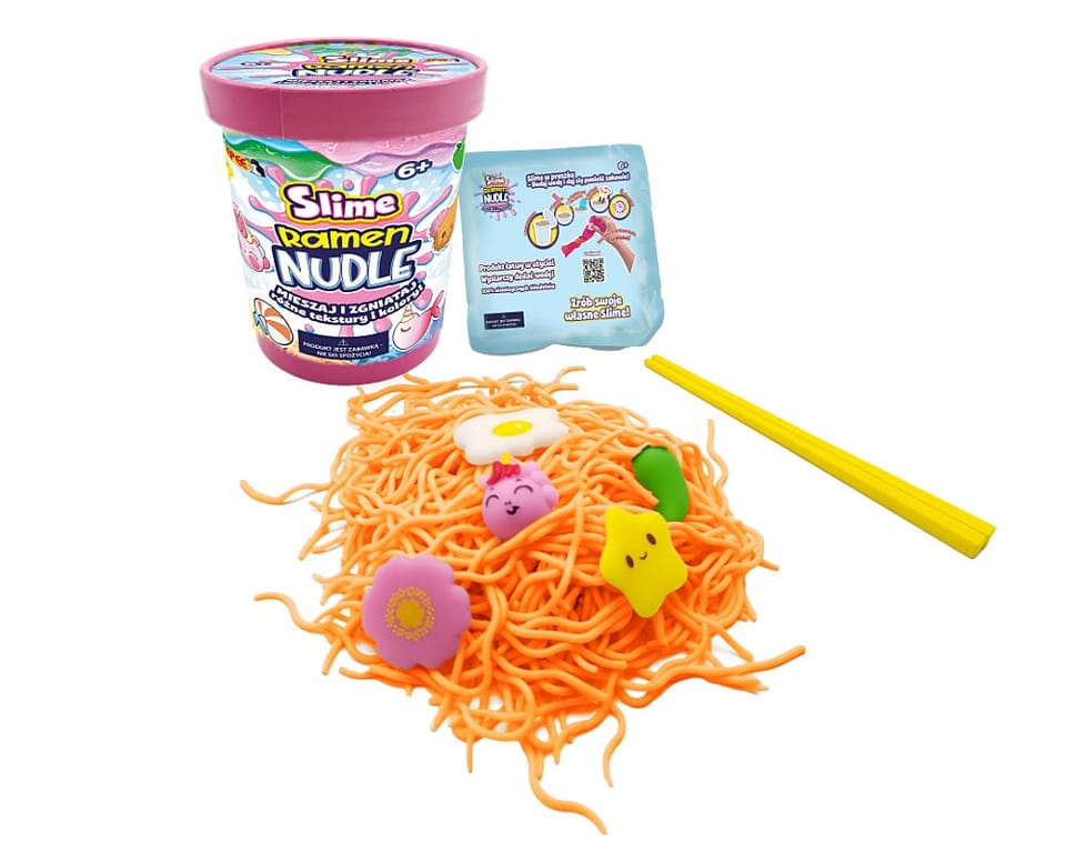 Zmień "makaron" w rozciągliwe slime! Przenieś się do kreatywnej kuchni i zamień zwykły "makaron" w niesamowicie rozciągliwe slime! Dzięki Slime Ramen Nudle dzieci mogą wcielić się w rolę małych kucharzy i stworzyć własne, kolorowe danie pełne zabawy. Wystarczy połączyć specjalny proszek z wodą, aby uzyskać bazę slime przypominającą prawdziwy ramen. Następnie dodaj rozciągliwe nudle oraz urocze, miękkie dodatki, które urozmaicą Twoje kulinarne dzieło. Voila - gotowe!