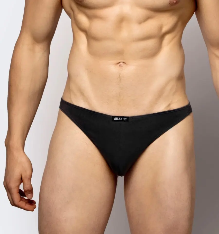 Stringi męskie wysoko podkrojone po bokach, mają niską talię wykończoną gumą wewnętrzną i w całości eksponują pośladki. Wykonane są z miękkiej i przyjemnej w dotyku bawełny połączonej z elastanem. Skład: 95% bawełna, 5% elastan.