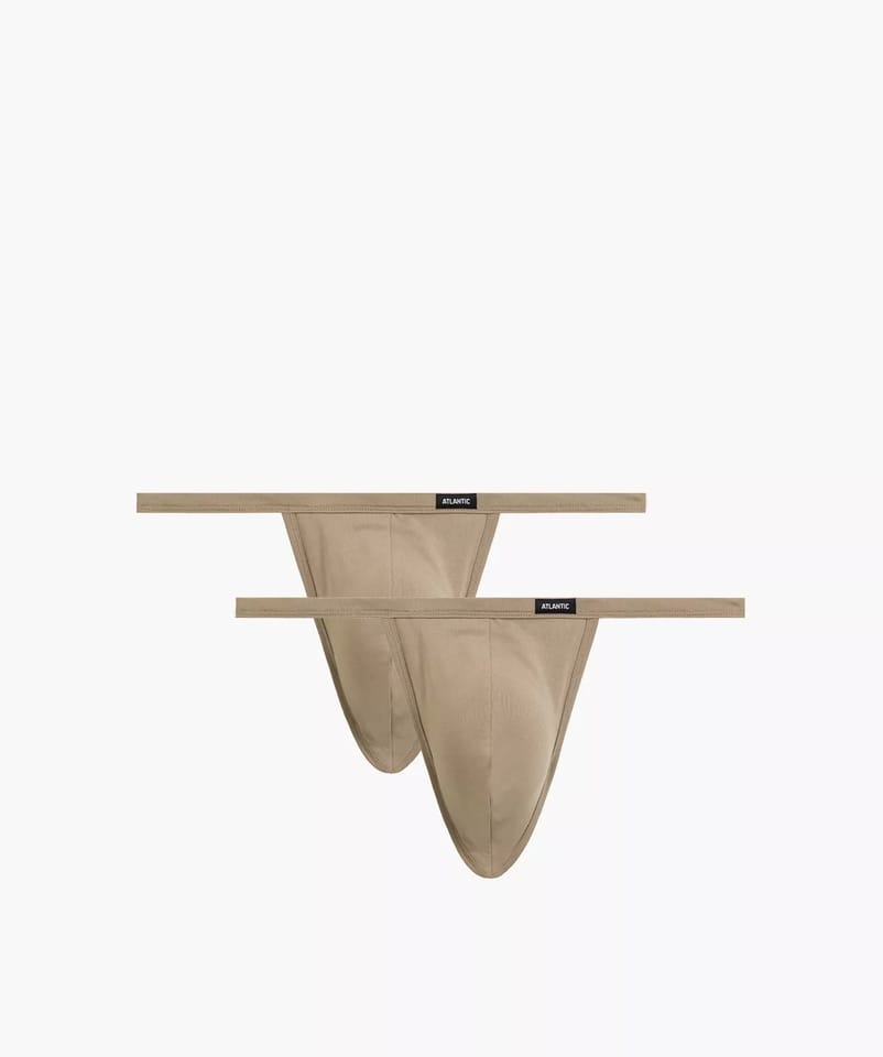 Stringi męskie mają niską talię oraz bardzo wąskie boki, zaznaczone wąskim paskiem materiału, ozdobionym z boku logo Atlantic. Krój w całości eksponuje pośladki. Seksowny krój. W opakowaniu 2 szt. Skład: 88% mikromodal, 12% elastan.