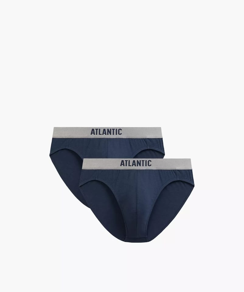 Slipy z niską talią wykończoną szeroką, elastyczną i mieniącą się gumą zewnętrzną z dużym logo Atlantic, stabilnie utrzymuje bieliznę na miejscu i nie powoduje uciskania ciała. W opakowaniu 2 szt. Skład: 47% modal, 46% bawełna pima, 7% elastan.