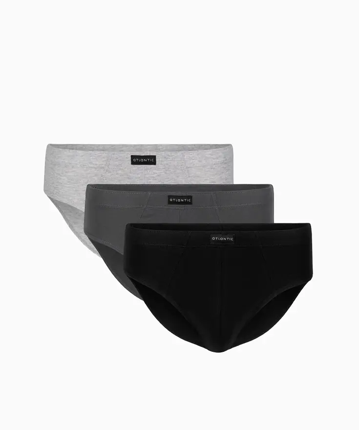Slipy męskie o klasycznym fasonie. Średniej szerokości po bokach i mają niską talię wykończoną gumą tunelową. Wykonane z miękkiej bawełny (100%), która jest odporna na wysokie temperatury. Pakowane po 3 sztuki.