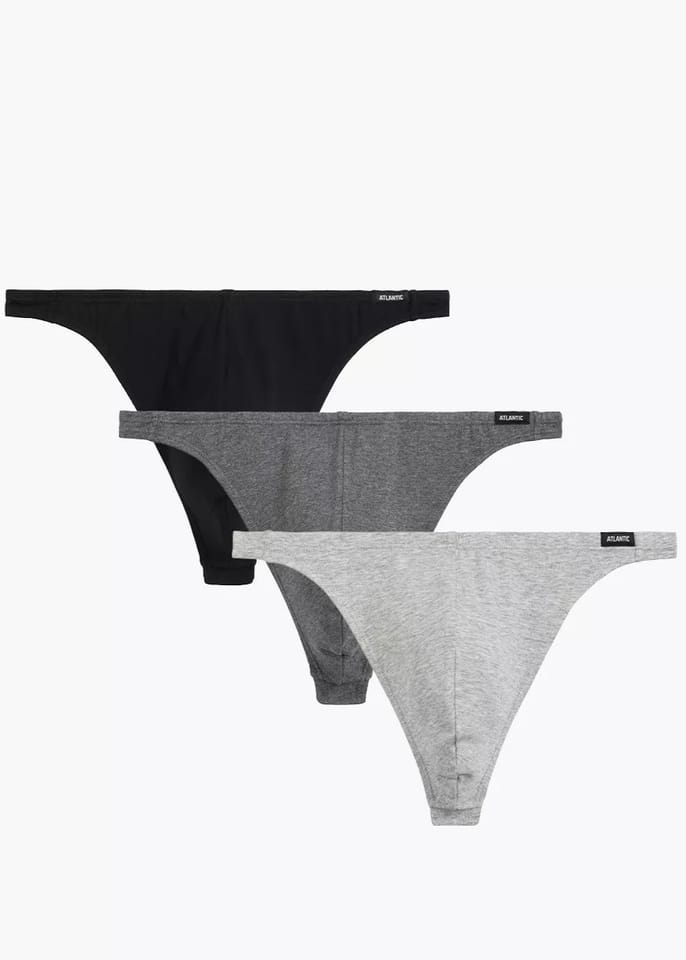 Stringi dla pewnych siebie mężczyzn. Mają bardzo wąskie boki oraz niską talię, zaznaczoną ledwie wyczuwalną gumą wewnętrzną. W całości eksponują pośladki. Uniwersalne kolory. Pakowane po 3 szt. Skład: 95% bawełna, 5% elastan.