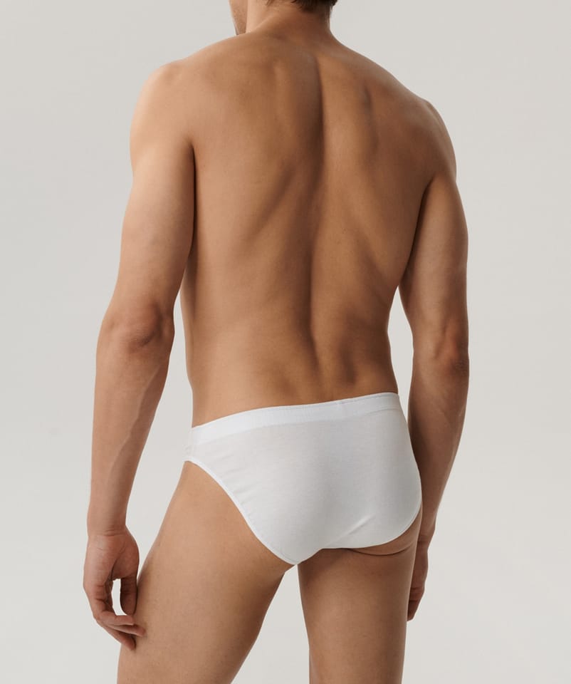 Slipy męskie o sportowym fasonie. Są wysoko podkrojone wokół ud i mają obniżoną talię wykończoną gumą tunelową. Wykonane z miękkiej bawełny (100%), która jest odporna na wysokie temperatury. Pakowane po 3 sztuki.