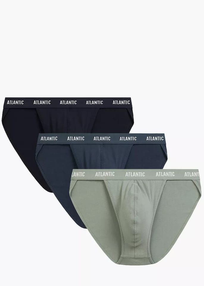3- pack slipów o kroju typu tanga. Seksowna, a jednocześnie sportowa bielizna odznacza się niską talią, zaznaczoną szeroką i nieuciskającą ciała gumą zewnętrzną z napisami Atlantic, która stanowi jednocześnie boki slipów. Skład: 95% bawełna, 5% elastan.