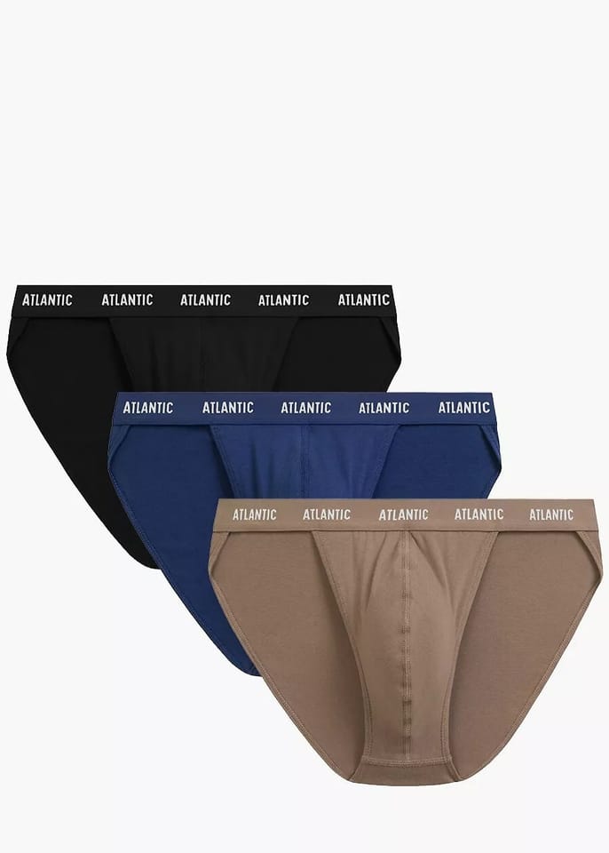 3- pack slipów o kroju typu tanga. Seksowna, a jednocześnie sportowa bielizna odznacza się niską talią, zaznaczoną szeroką i nieuciskającą ciała gumą zewnętrzną z napisami Atlantic, która stanowi jednocześnie boki slipów. Skład: 95% bawełna, 5% elastan.