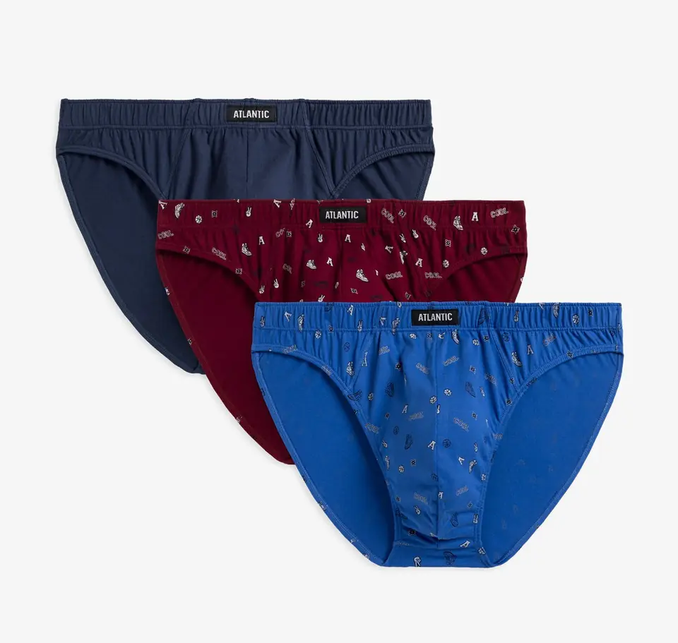 Slipy męskie o sportowym kroju. Wysoko podkrojone wokół, niski stan wykończony w talii nieuciskającą, komfortową gumą wewnętrzną. Idealne dopasowanie do sylwetki. Pakowane po 3 sztuki. Skład: 95% bawełna, 5% elastan.