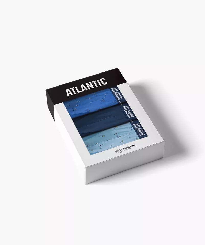 Sportowe slipy z niską talią, zaznaczoną szeroką i nieuciskającą ciała gumą z logo Atlantic oraz wąskimi bokami.. Zapewniają idealne dopasowanie do sylwetki.Pakowane po 3 sztuki. Skład: 95% bawełna, 5% elastan.
