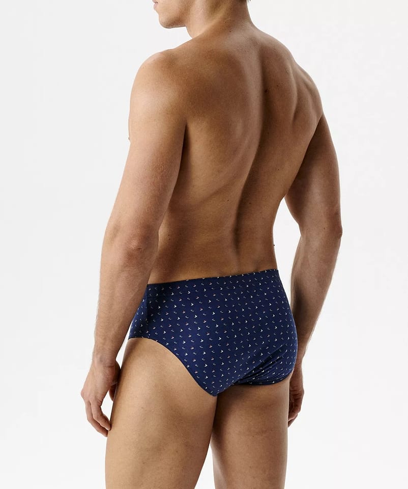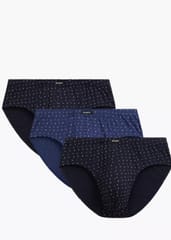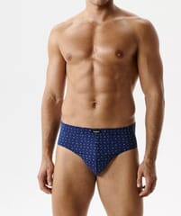 W trzypaku znajdują się slipy męskie o klasycznym kroju. Mają szerokie boki i średniej wysokości stan, zaznaczony nieuciskającą gumą wewnętrzną, która zapewnia stabilne trzymanie bielizny na miejscu. Skład: 100% bawełna.