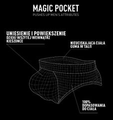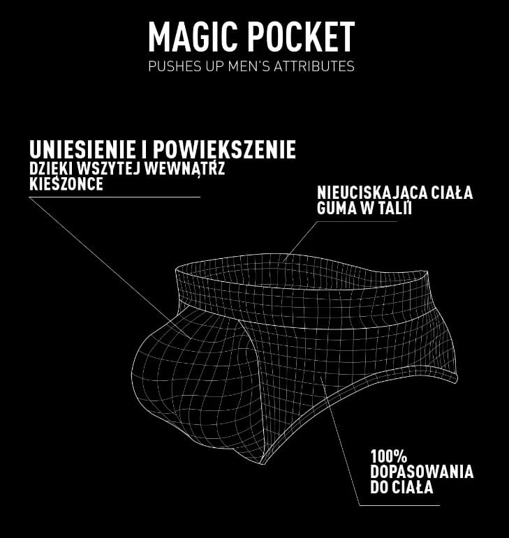 Slipy męskie o sportowym kroju. Zapewniają uniesienie i powiększenie i maksymalny komfort. Wysoko podkrojone boki i niska talia, nieuciskająca ciała, miękka guma zewnętrzna. Skład: 95% bawełna, 5% elastan.