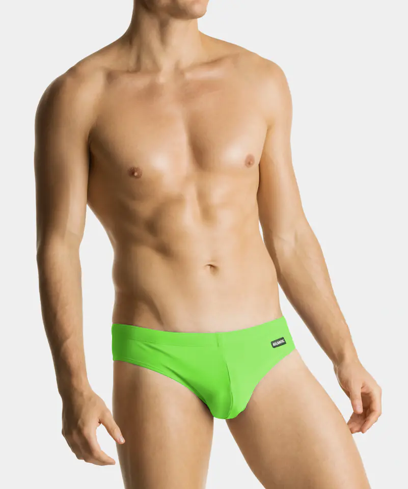Gładkie kąpielówki o sportowym kroju. Głęboko wycięte boki, średniej wysokości talia zaznaczona regulowanym sznurkiem wewnętrznym. Wnętrze slipów wyposażone w praktyczną podszewkę. Skład: 80% poliamid, 20% elastan.