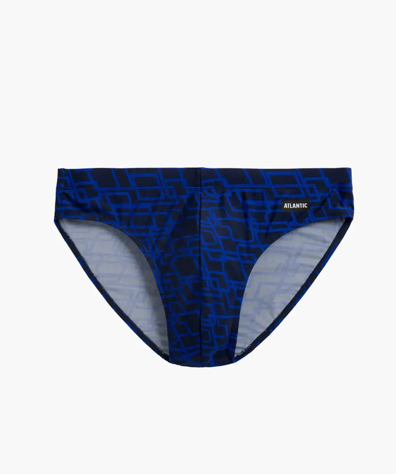 Wzorzyste kąpielówki o sportowym kroju. Głęboko wycięte boki, średniej wysokości talia zaznaczona regulowanym sznurkiem wewnętrznym. Wnętrze slipów wyposażone w praktyczną podszewkę. Skład: 80% poliamid, 20% elastan.