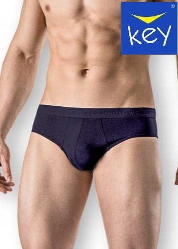 Slipy męskie z miękkiej bawełny z dodatkiem elastanu 5%. Zastosowanie płaskich szwów zapewnia komfort noszenia. Guma podtrzymująca z wytłaczanym napisem "KEY UNDERWER". Pakowane w pudełko po dwie sztuki w tym samym kolorze.