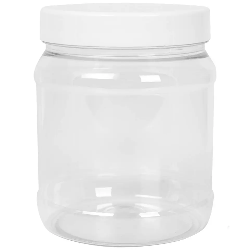 Kod produktu: 1009927Wysokiej jakości słoiczek wykonany z tworzywa PET o pojemności 1000ml. Może być wykorzystany do produktów spożywczych, kosmetycznych lub innych dowolnych celów. Pokrywka w kolorze białym bez wkładki, posiada uszczelnienie kołnierzowe.Parametry techniczne:- kolor: transparentny- gwint: 100 / 400- pojemność nominalna: 1000 ml- pojemność całkowita: 1135 ml- wysokość: 133 mm- średnica: 112 mm- gramatura słoiczka: 60 g- kształt podstawy: okrągłyW zestawie:- słoiczek PET 1000 ml- pokrywka w kolorze białym