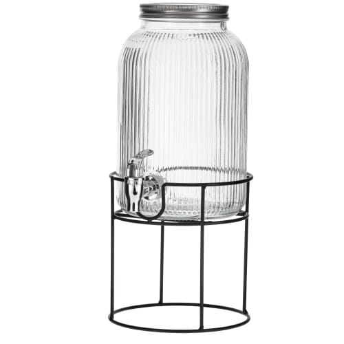 Słój do napojów z kranikiem 4L | Szklany dyspenser z ryflowanym szkłem i metalowym stojakiem