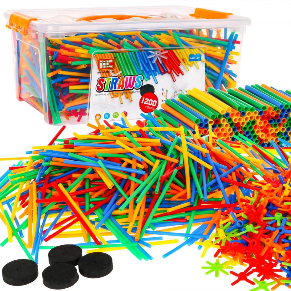 | Duży zestaw klocków – słomek konstrukcyjnych to zabawka dla dzieci od 3 – go roku życia. W zestawie jest aż 1200 elementów, z których Twoja pociecha może zbudować wiele wspaniałych konstrukcji takich jak: wieże, pojazdy, mosty, budynki itp. Patyczki doskonale się ze sobą łączą za pomocą łączników. Są różnokolorowe: zielone, czerwone, niebieskie, pomarańczowe i żółte. Całość zapakowana jest w plastikową skrzyneczkę z uchwytem do przenoszenia. Zabawa słomkami rozwinie wyobraźnię u Twojej pociechy, nauczy kreatywnego i logicznego myślenia. | |