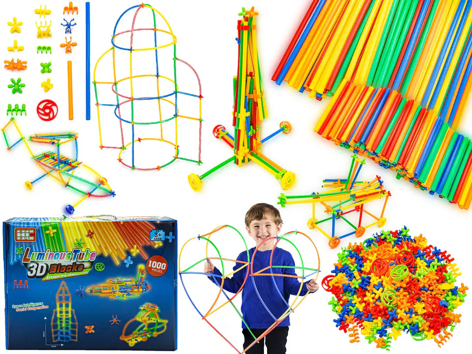 Słomki Konstrukcyjne, Klocki Edukacyjne, Patyczki 1000el. Świecące W Ciemności