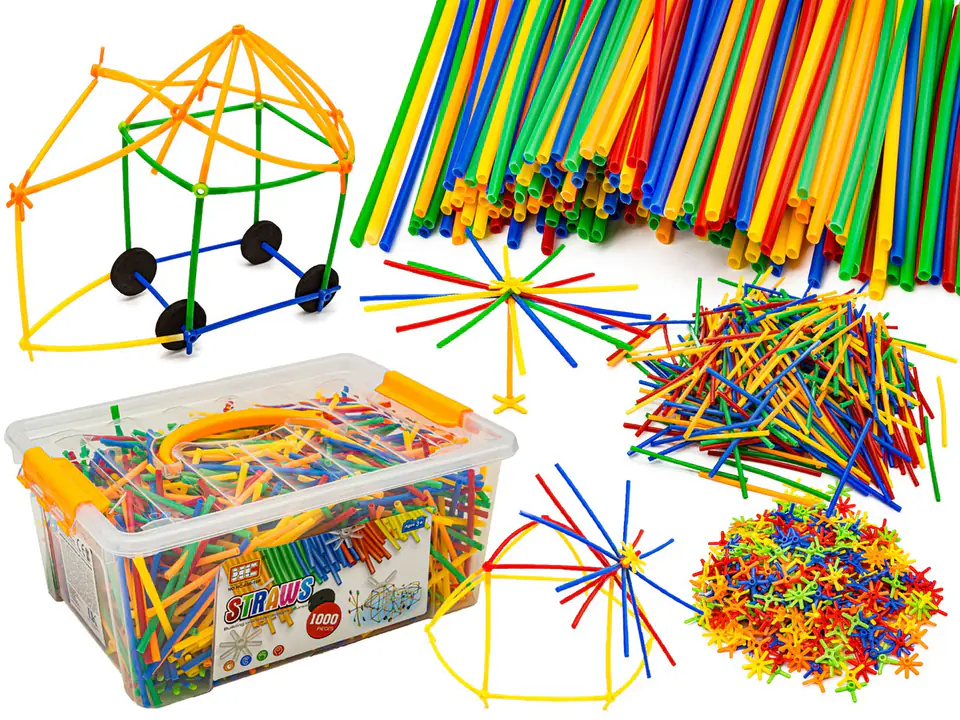 Słomki konstrukcyjne to zabawka do samodzielnego zaprojektowania i zbudowania. Zestaw składa się z wielu kolorowych, plastikowych słomek o różnych kształtach i kolorach oraz pozwala na dowolne budowanie wszystkiego co wymyśli dziecko. Zabawka, która przemieni dziecko w małego architekta, pobudzi wyobraźnię i pomoże rozwinąć zdolności konstruowania.