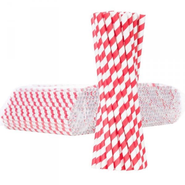 Słomki papierowe BIO ekologiczne PAPER STRAWS grube 8/205mm - biało-czerwone 500szt.